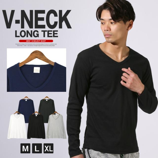 ロンT 長袖Tシャツ メンズ Vネック Tシャツ 長袖 トップス カットソー インナー 無地 ストレッチ 伸縮 春服【Vネック無地ロンT】 aa-3439
