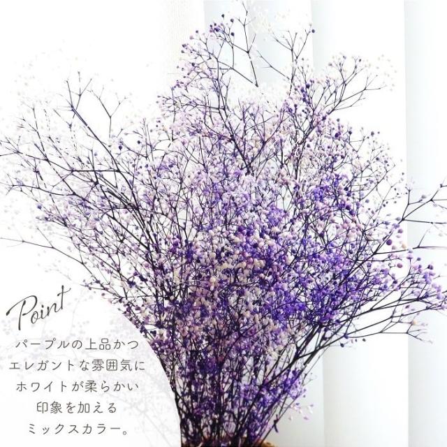 ドライフラワー プリザーブドフラワー ミニカスミ草 フラワーベール 白/紫 全長約40cm かすみ草 かすみそう ブーケ 天然素材 ミックス 大地農園 アレンジ材 インテリア