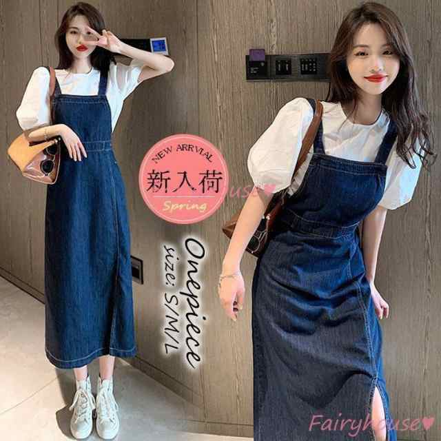 連携キーワード:ワンピース レディース 40代 きれいめ デニムワンピース 春夏新作 半袖ブラウス 白パフスリーブ デニムサロペットスカート セットアップ オシャレ韓国風 大人 カジュアル 通勤OL 30代 50代