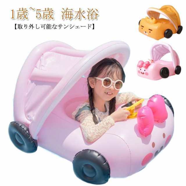 子供 浮き輪 足入れ 子ども キッズボート ハンドル付き 赤ちゃん 幼児用 かわいい 車 浮輪 日よけ屋根付き うきわ ベビー 日除け 幼児用 足入れ