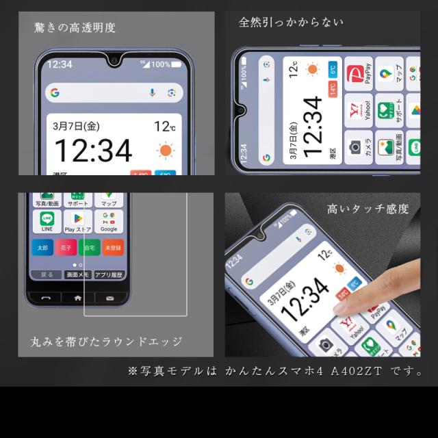 【2枚セット】かんたんスマホ4 強化ガラスフィルム かんたんスマホフォー A402ZT ワイモバイル 液晶画面保護ガラスシール スクリーン保護シート ディスプレー保護フィルム 高透過率 0.3mm 超薄型 滑らか 表面硬度10H 耐衝撃 割れにくい 疎油 撥水 耐スクラッチ性 気泡レス