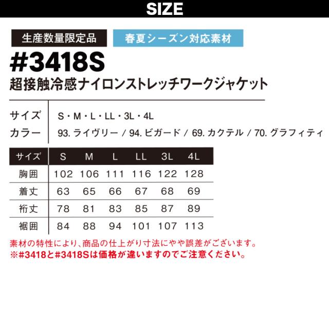 アイズフロンティア 超接触冷感ナイロンストレッチワークジャケット 3418S 春夏シーズン対応 吸水速乾 抗菌防臭 UVカット 冷感性 全方向ストレッチ 作業着 スポーツ アウトドア メンズ