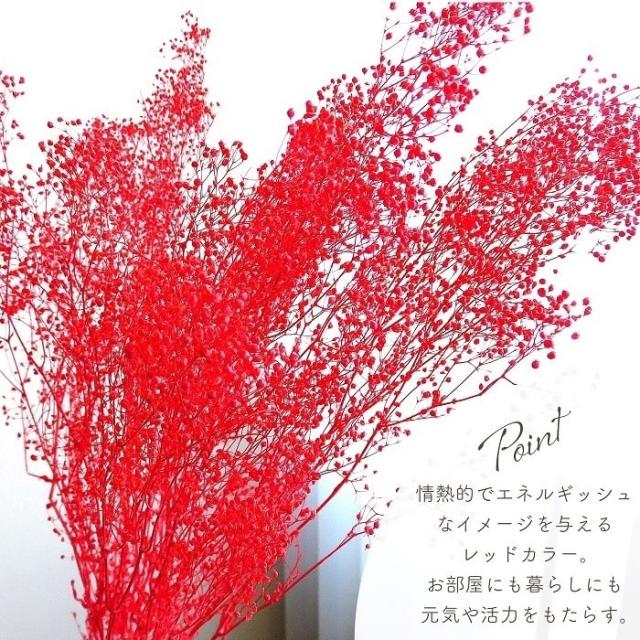 ドライフラワー プリザーブドフラワー ミニカスミ草 レッド 全長約55cm かすみ草 かすみそう ブーケ 赤 ビビット 天然素材 大地農園 アレンジ材 インテリア