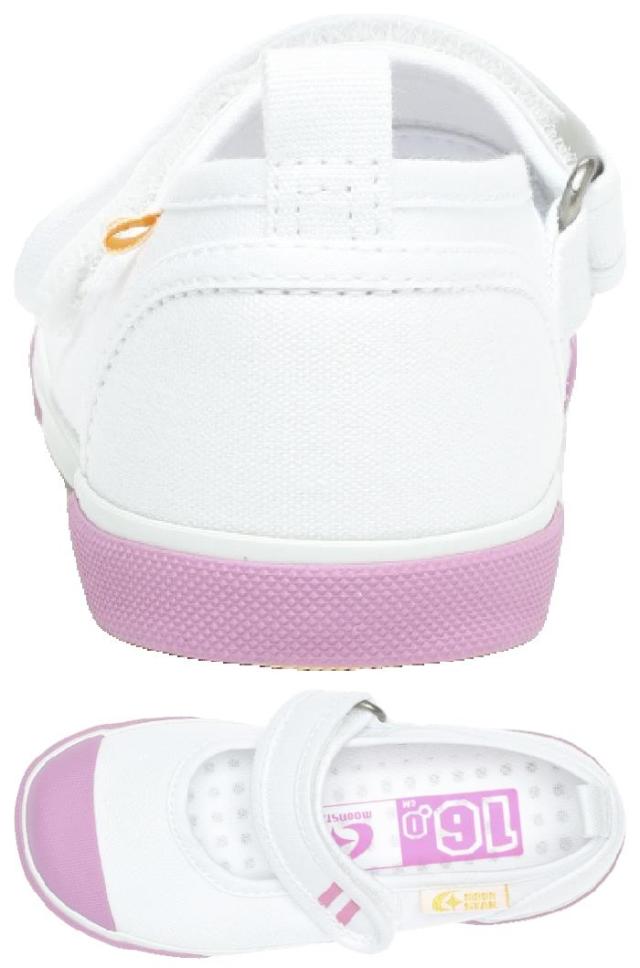 ロングセラーを続けるムーンスター「キャロット」の折り返し甲バンドタイプ上履きです。つま先にゆとりを持たせた形状で、足の指を圧迫せずにのびのび動かせます。踵の「カウンターボックス」が、子どものやわらかくゆがみやすい足を箱型構造でしっかり支えます。「フレックスジョイント」は、足の曲がりと同じ位置で靴が曲がる設計で、足に余計な負担をかけません。インソールは足裏になじみ、取り出して洗濯ができるのでいつも清潔に保てます。また、「Ag+抗菌防臭」も搭載しています。5色の中から好きなカラーをお選びください。重量は16.0cmで片足約120gです。