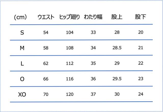 | ウエスト | 56-60 | 59-63 | 62-66 | 65-69 | 68-72 | 71-75 | 74-78 |