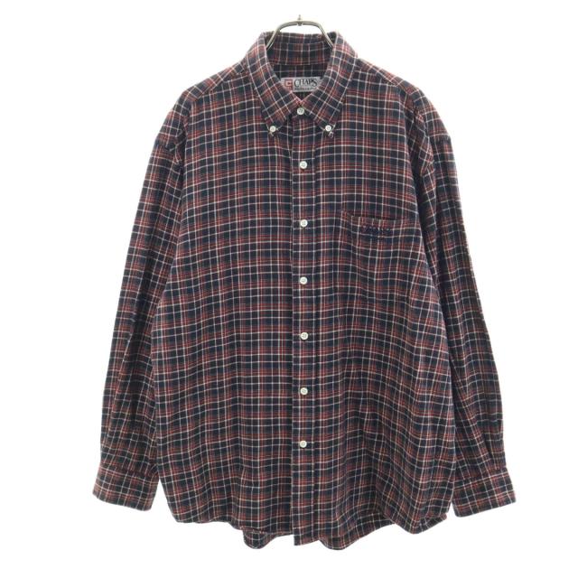 CHAPS RALPH LAUREN チャップスラルフローレン 日本製 チェック柄 長袖 ボタンダウンシャツ L ブラック×レッド メンズ