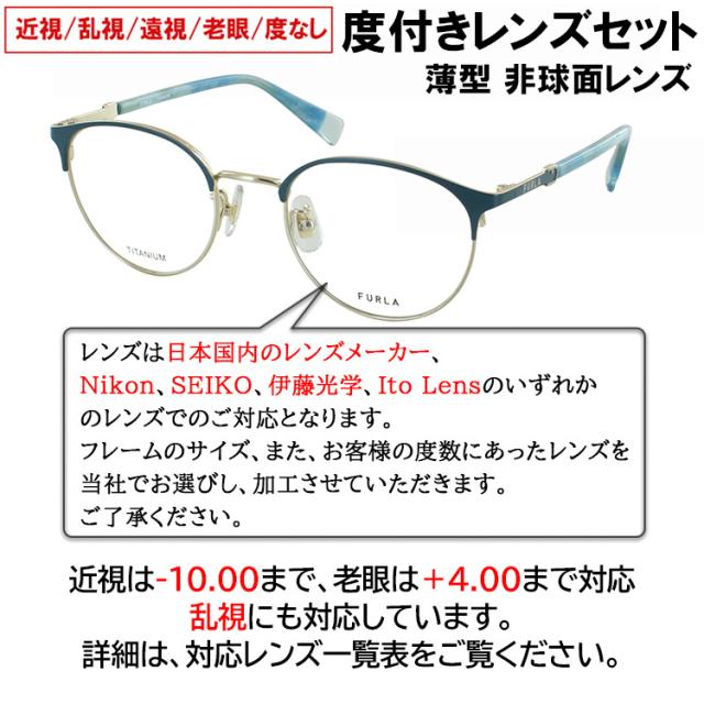 フルラ メガネ フレーム 薄型 非球面レンズ セット