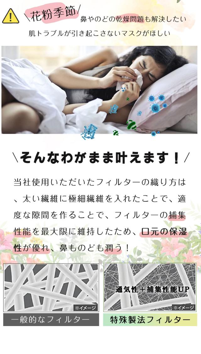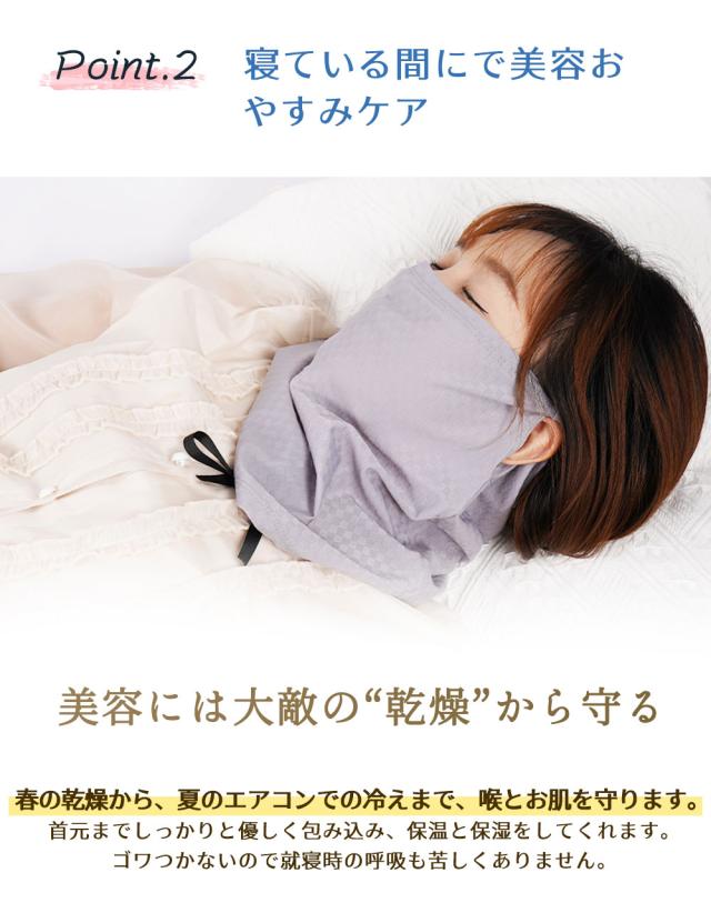【花粉や乾燥が気になる方にも】 花粉飛散の多い季節や、夜間の喉ケアが必要な時期におすすめです。口元まわりを優しく覆うことで、花粉やほこりなどの刺激からもガードしやすく、鼻・喉への負担を軽減します。