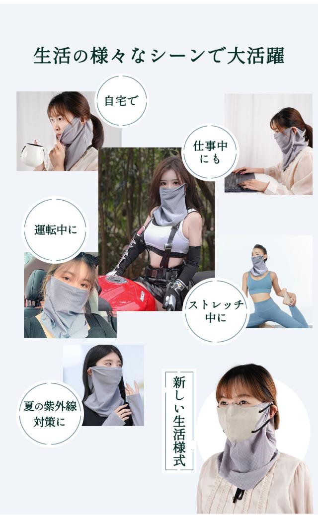 フェイスカバー UVカット ネックガード 紫外線対策 油煙 砂 花粉 花粉対策 飛沫防止 防塵 日焼け防止 フェイスマスク 冷感マスク 水洗い 男女兼用 耳かけ スポーツ 呼吸しやすい