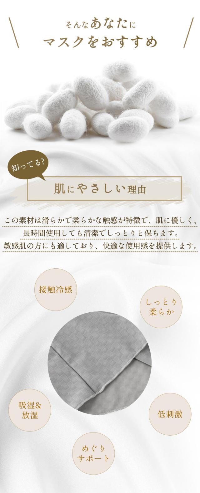 【超軽量&ひんやり冷感素材】 シルクではないものの、シルクのような滑らかさと軽さを目指した冷感素材を採用。就寝時でも重さを感じにくく、息苦しさを抑えます。通気性にも優れており、蒸れにくいのも特長です。