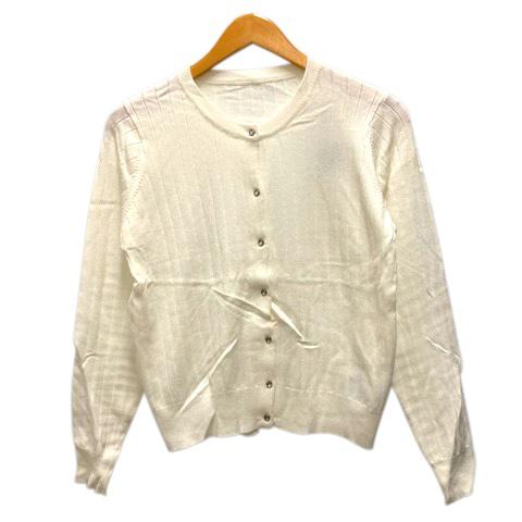 【中古】未使用品 ビス ViS アンサンブルニット カーディガン クルーネック ビジュー装飾 M 白 ホワイト レディース