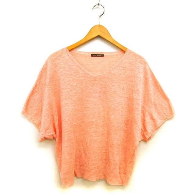 【中古】ミミ&ロジャー mimi&roger サマーニット セーター ワイド リネン メランジ Vネック スリット 透け感 五分袖 F