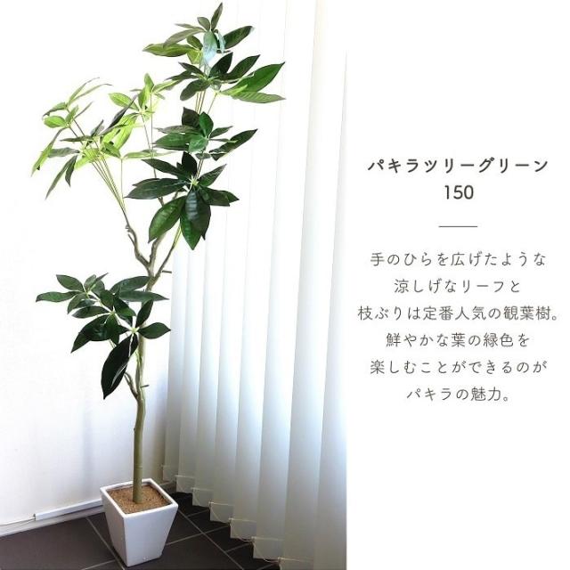 人工観葉植物 アーティフィシャルグリーン パキラツリー150 高さ150cm 大型 陶器製鉢 パキラ 造花 フェイク インテリアグリーン 観葉植物 贈り物 インテリア
