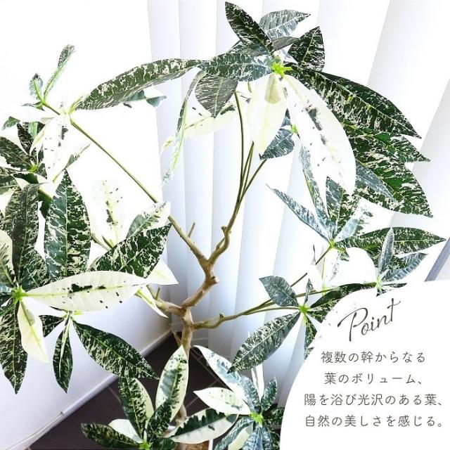人工観葉植物 アーティフィシャルグリーン パキラミルキーウェイツリー150 高さ150cm 白斑入り 大型 陶器製鉢 パキラ 造花 フェイクグリーン 観葉植物 贈り物 インテリア