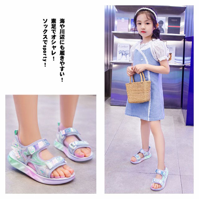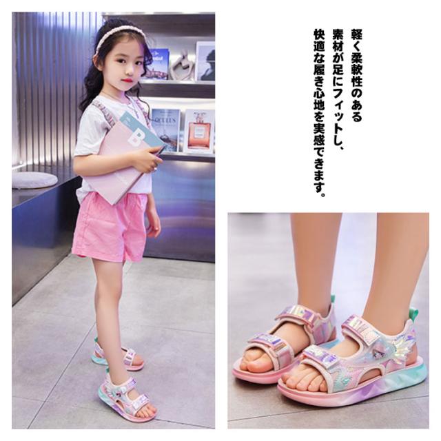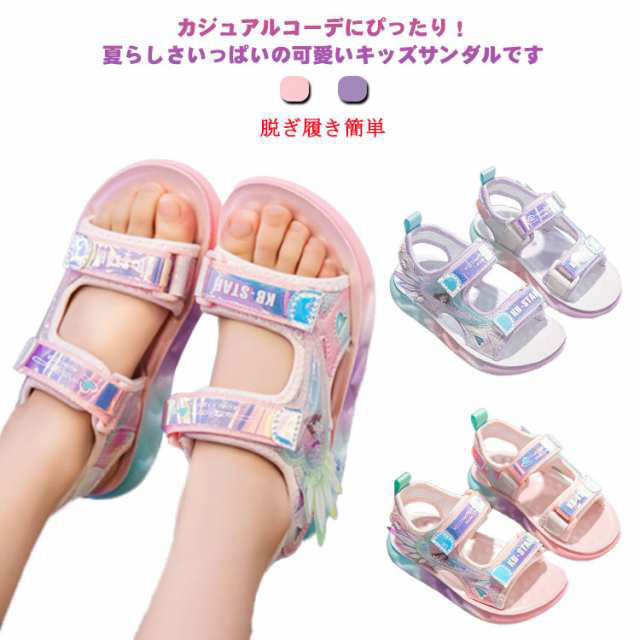 子供靴 キッズサンダル スポーツサンダル キッズシューズ 子ども 女の子 ジュニア マジックテープ 可愛い おしゃれ ベルクロ アウトドア ビーチ プール 滑り止め 軽い 通気性 ソフト 脱ぎ履き簡単 送料無料