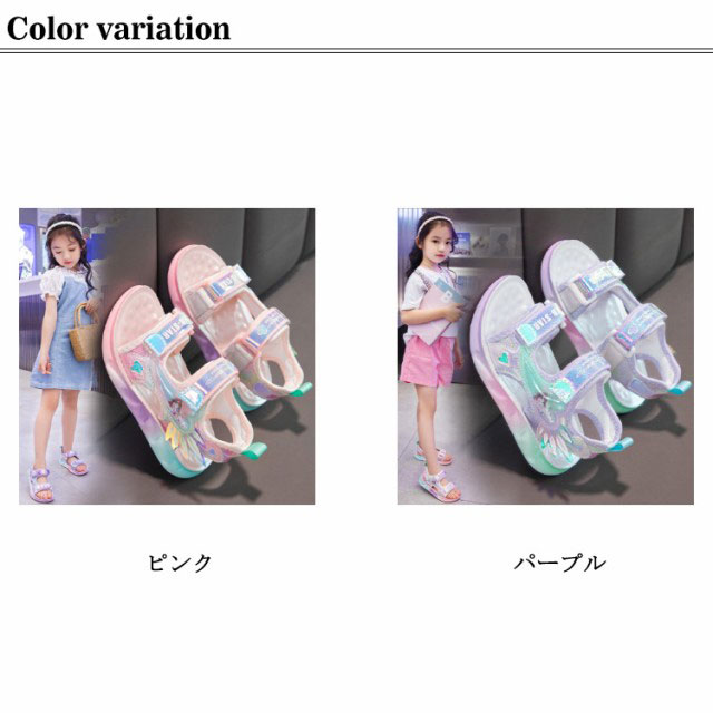 | カジュアルコーデにぴったり!夏らしさいっぱいの可愛いキッズサンダルです。 留め具はベルクロで着脱も簡単!安定したフィット感を実現します。 軽く柔軟性のある素材が足にフィットし、快適な履き心地を実感できます。 滑り止め加工がされているので、安全に履けるキッズサンダルです。 海や川辺にも履きやすい!素足でオシャレ!ソックスでsporty! | |