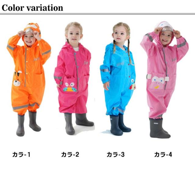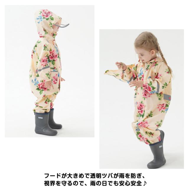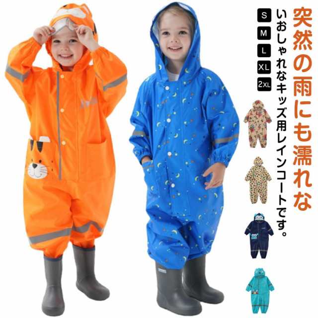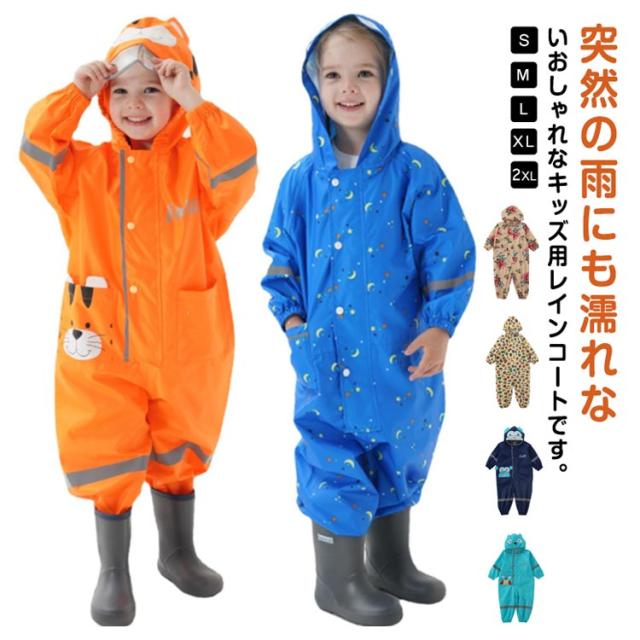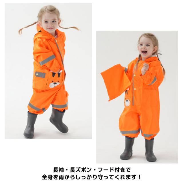 レインコート 長袖 子供用 撥水 遊び着 砂場着 ベビー レインスーツ レインウェア つば付き 男の子 女の子 可愛い お洒落 レインパンツ 水遊び レインロンパース つなぎ 通学 通園 アウトドア 反射テープ 収納ポーチ付き 送料無料