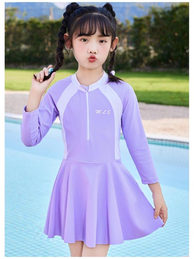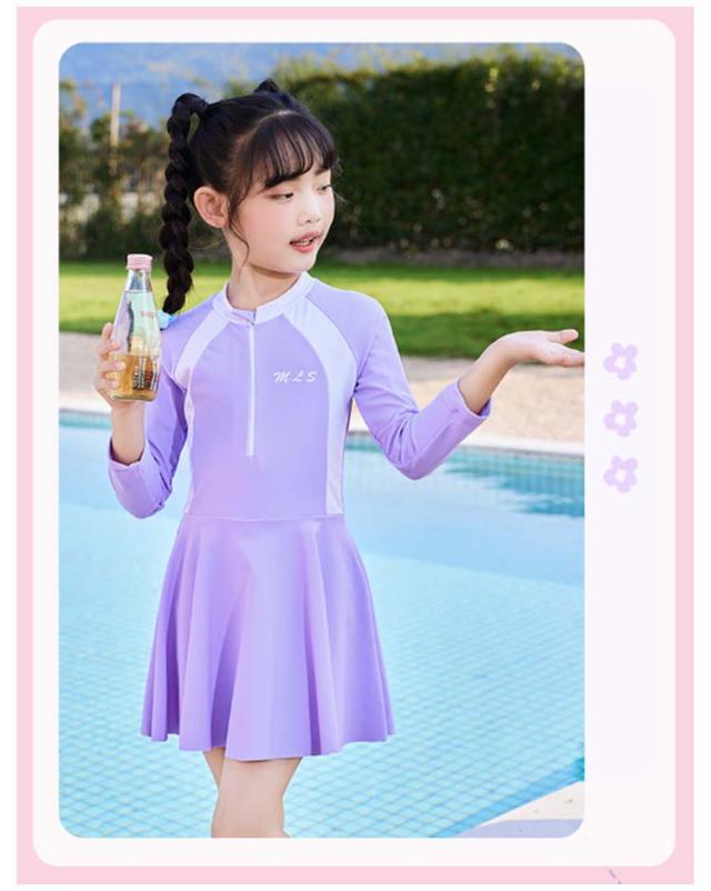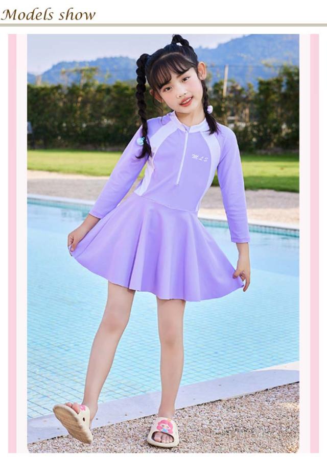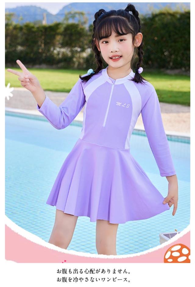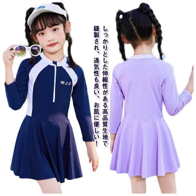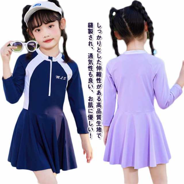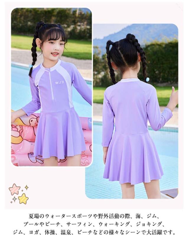 キッズ 水着 女の子 ワンピース ジュニア スクール水着 ラッシュガード 長袖 オールインワン みずぎ 体型カバー 子供 水着 前開き 吸水速乾 幼稚園 小学生 スポーツウエア スイムウェア レデイース 日焼け防止 温泉 プール 水泳 水遊び UV対策 スイミング おしゃれ
