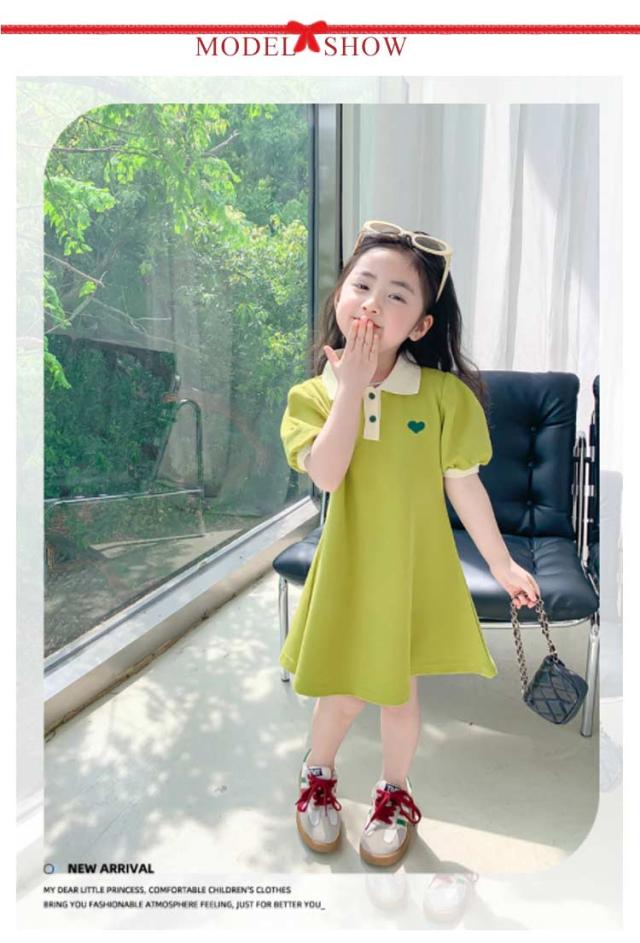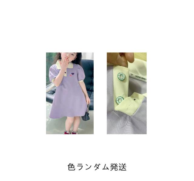 ワンピース キッズ 女の子 半袖 ポロ ワンピース ポロシャツ パフ袖 フレア 膝丈 子供服 子ども服 こども服 夏 90 100 110 120 130 140 150 ポロシャツワンピース Aライン 可愛い ベビー キッズ服 ハート柄 シンプル グリーン パープル かわいい