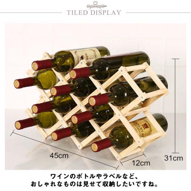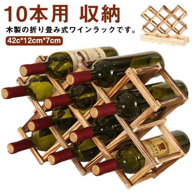 木製 折りたたみ式 ワインラック 10本用 木製 ホルダー ワインボトル ラック ワイン棚 シャンパン ボトル スタンド 折り畳み 収納 コンパクト インテリア 見せる収納 省スペース おしゃれ ホーム キッチン キッチン用品