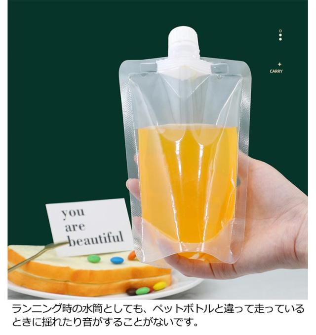 | 多種類の飲み口×全7サイズ!100ml/150ml/200ml/250ml/300ml/380ml/500mlの自立できるスタンドパウチ200個セットです。 お湯OK、冷凍庫保存もOK!-20?100度まで耐えれます。 お店で自家製ドリンク等を販売、クリアの容器ですのでお店のシールを貼ると一層魅力的な商品になります。 ランニング時の水筒としても、ペットボトルと違って走っているときに揺れたり音がすることがないです。 減った分はコンパクトにたたむ事が出来ます!! ボトルに比べて小さく折りたたんで廃棄でき、ゴミの減容化が可能、環境配慮型パッケージです。 ゼリー飲料、ジャム、マスタード、ケチャップ、のり佃煮、ドレッシング、タルタルソース等にも。 簡単便利なキャップ付きの規格袋です。 水、ジュース、ミルクなどの飲み物の容器としてオススメ。 キャップでしっかり密封すると漏れる心配がないんです。 旅行なども携帯するのにも便利! | |