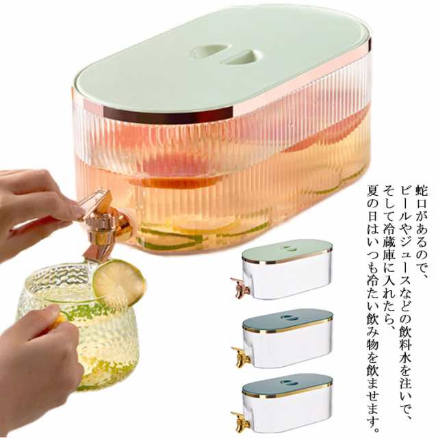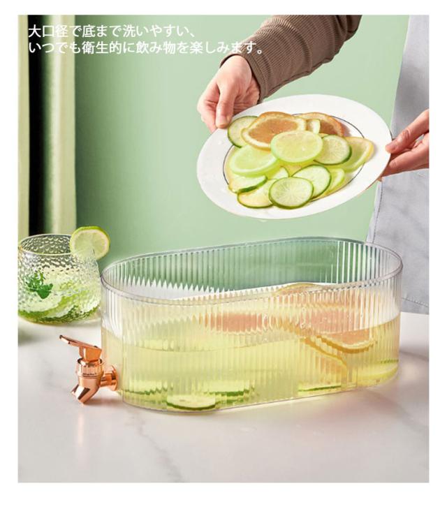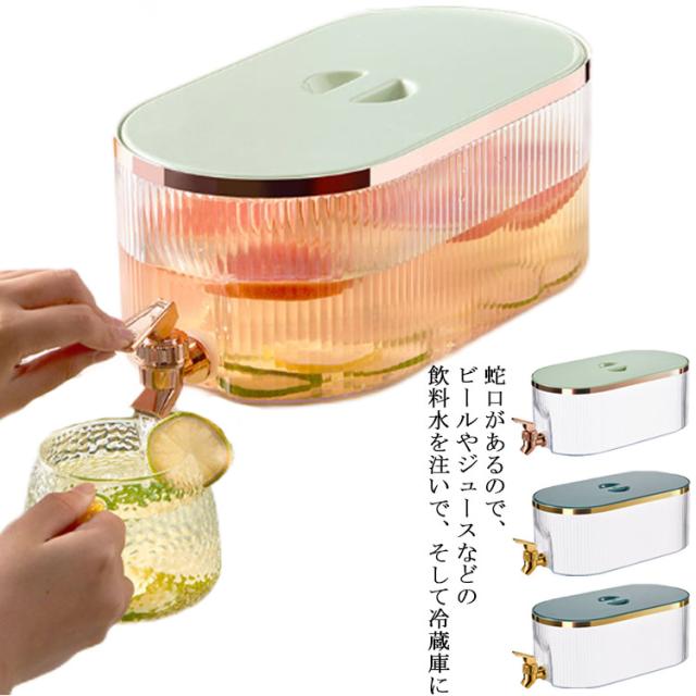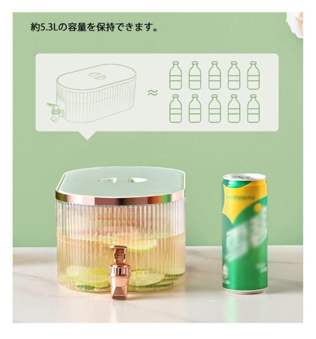 冷水筒 横置き 北欧 ドリンクサーバー 蛇口付き 大容量 耐熱 耐冷 5.3L ピッチャー 冷水ポット ウォーターサーバー 麦茶ポット 水差し 冷蔵庫 DIY ファミリー 3色 漏れない