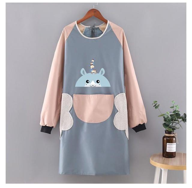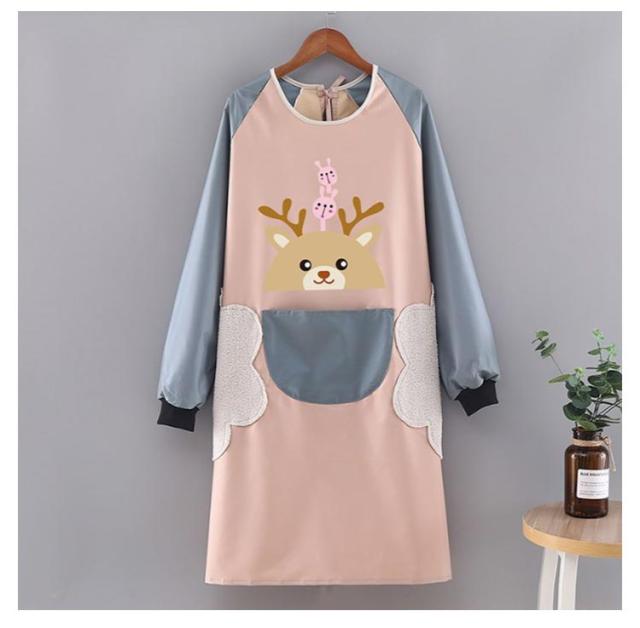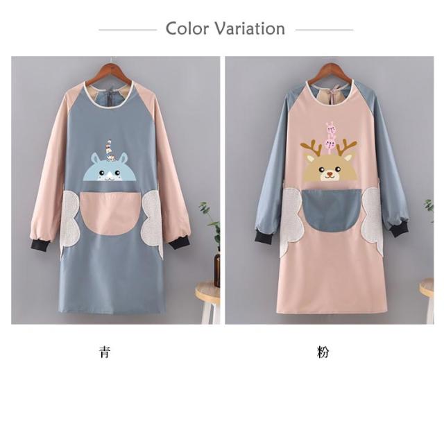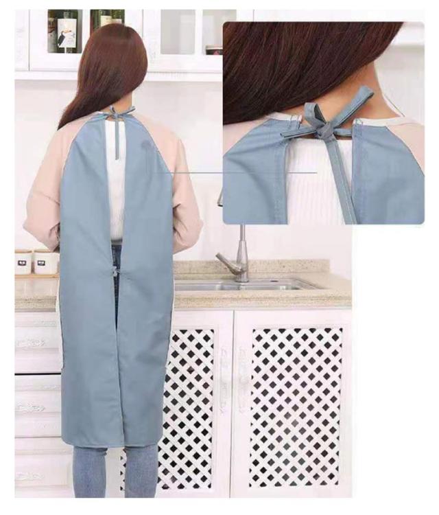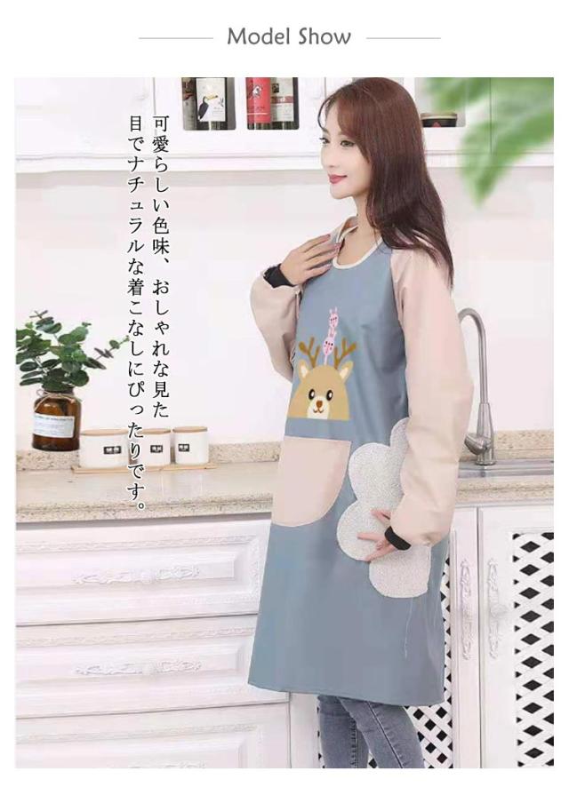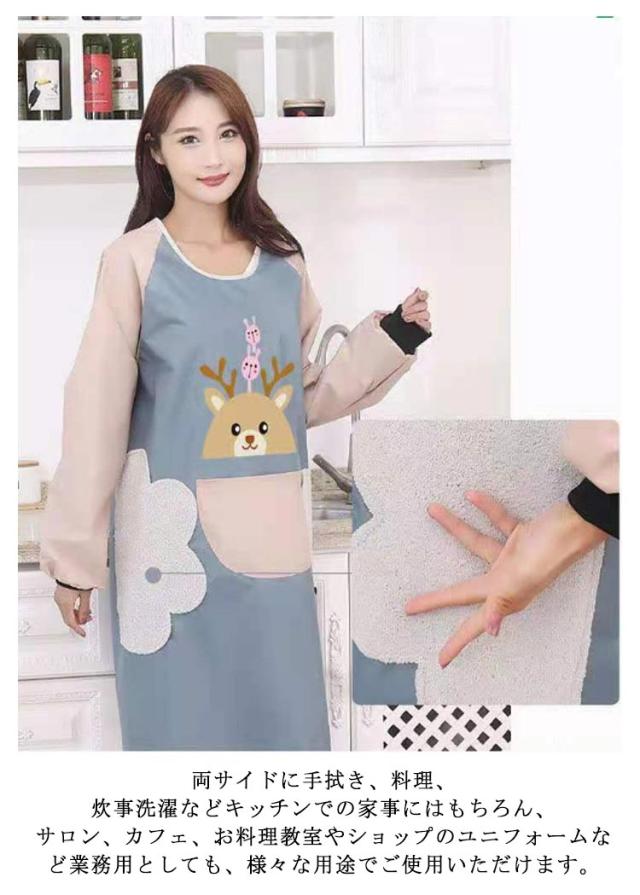 袖付きエプロン スモック 割烹着 かわいい エプロン 保育士 ロング チュニック おしゃれ 防水 防汚 手拭き付き レディース 介護士 母の日 プレゼント 料理 給食 学校