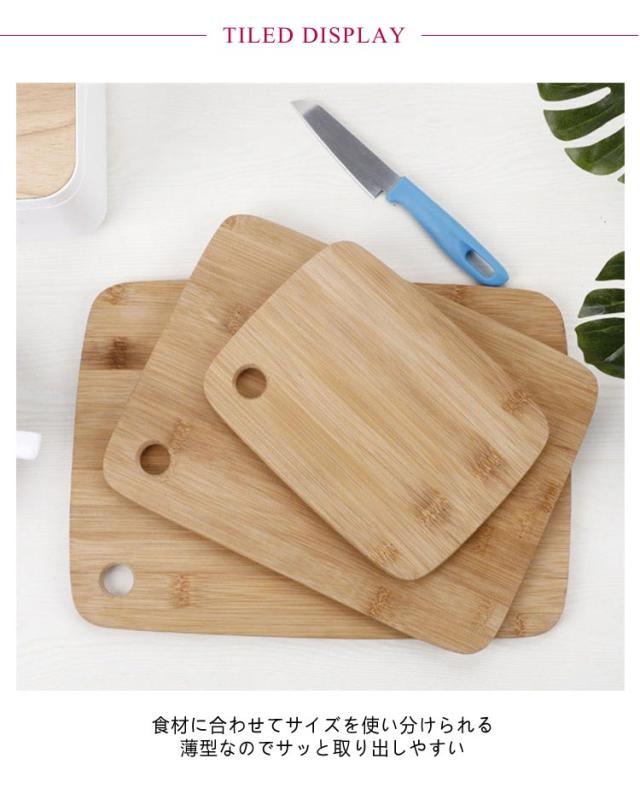| 環境に優しい天然竹で作られたカッティングボード3点セット。 食材に合わせてサイズを使い分けられる 薄型なのでサッと取り出しやすい フックなどに掛けて収納できるよう、大きめの穴を空けています。 ご自宅用にはもちろんのこと、お料理好きな方へのプレゼントにもおすすめです。 | |