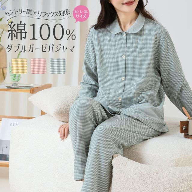 パジャマ 上下セット ダブルガーゼ ガーゼパジャマ レディース 綿100% 長袖 春 夏 前開き カントリー風 寝巻き ルームウェア お揃い