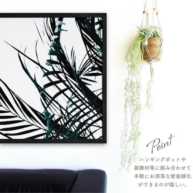 ハンギングポットや装飾材等に組み合わせて手軽にお洒落な壁面緑化ができるのが嬉しい。場所を選ばずに水やりなどの手間を掛けずにお部屋に緑のある暮らしを。