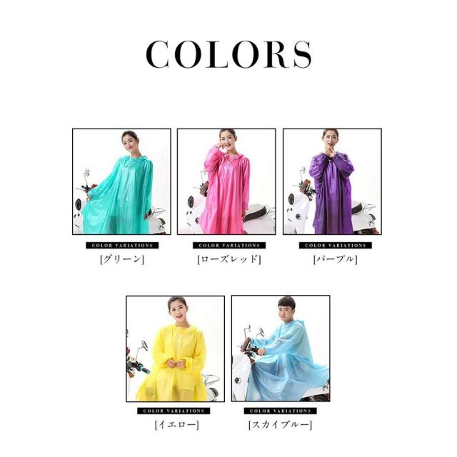 【ポイント5倍!】レインコート 自転車 メンズ レディース レインポンチョ 透明 カラフル バイク用レインウェア 梅雨 雨具 通学通勤 男女兼用