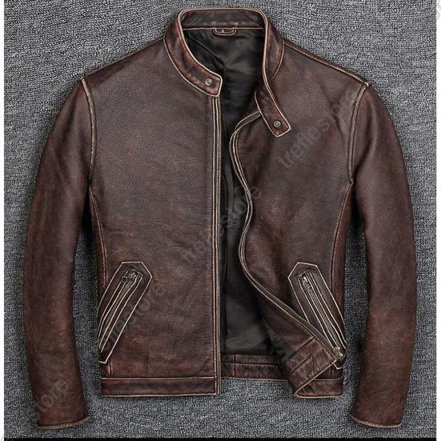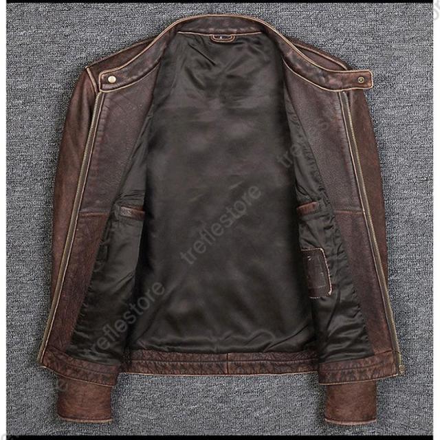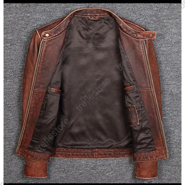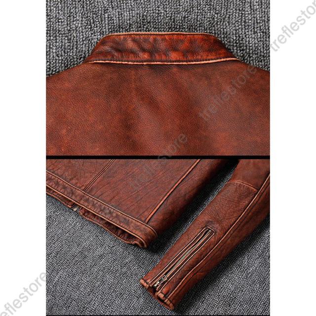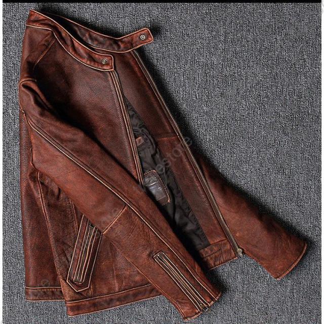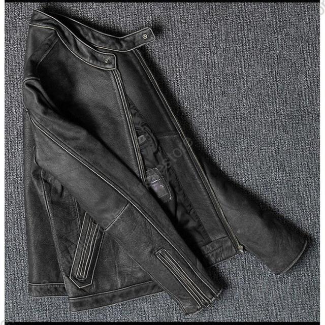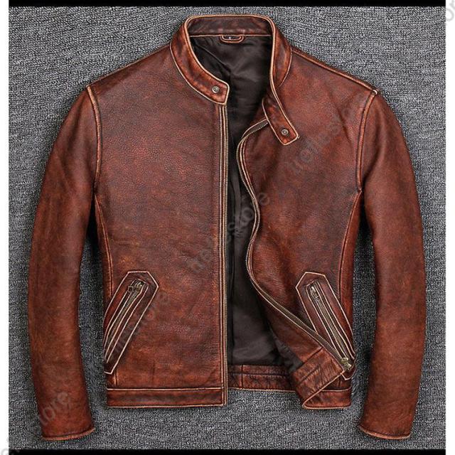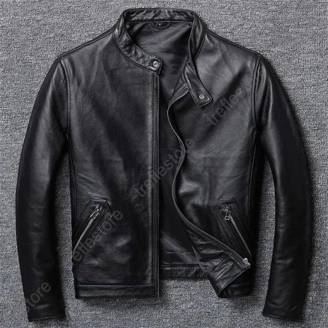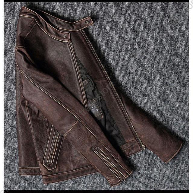 【ポイント5倍!】メンズ革ジャン 本革 秋冬 レザージャケット 立ち襟 スリム 牛革 ライダースジャケット バイクウェア シングル 男性用 上品 防寒防風