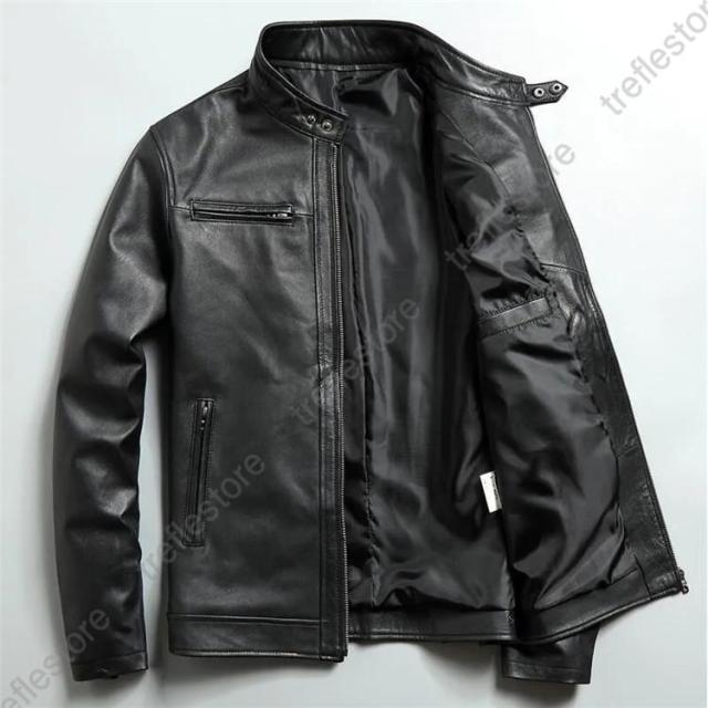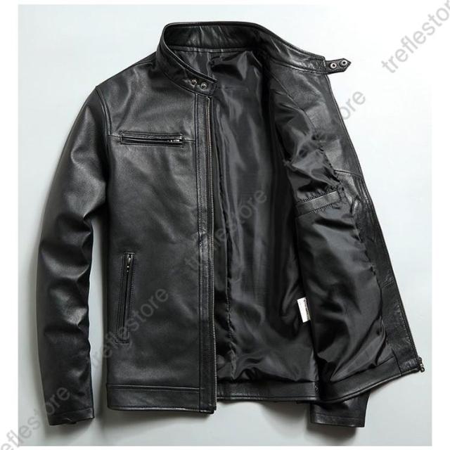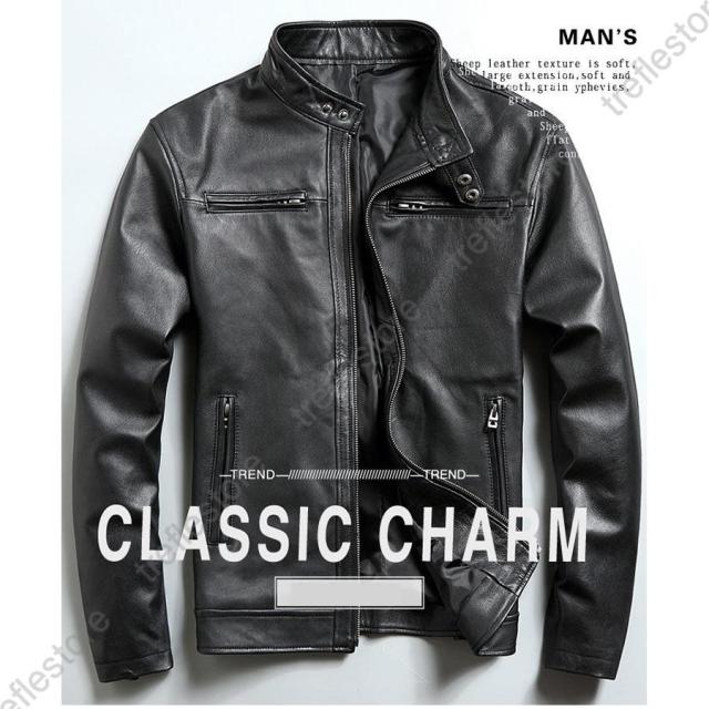 【ポイント5倍!】メンズ革ジャン 本革 秋冬 レザージャケット 立ち襟 スリム ラム革 ライダースジャケット バイクウェア シングル 男性用 上品 防寒防風