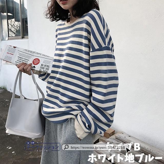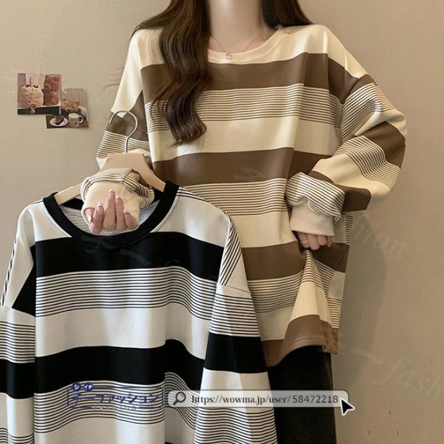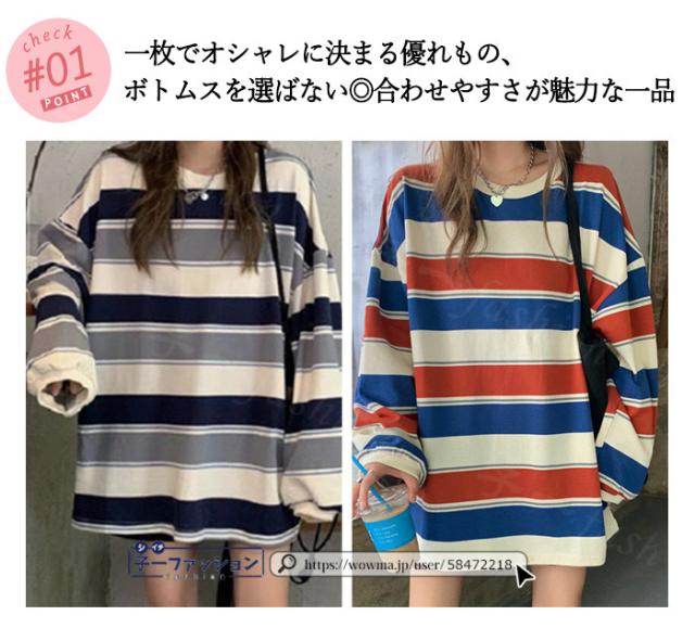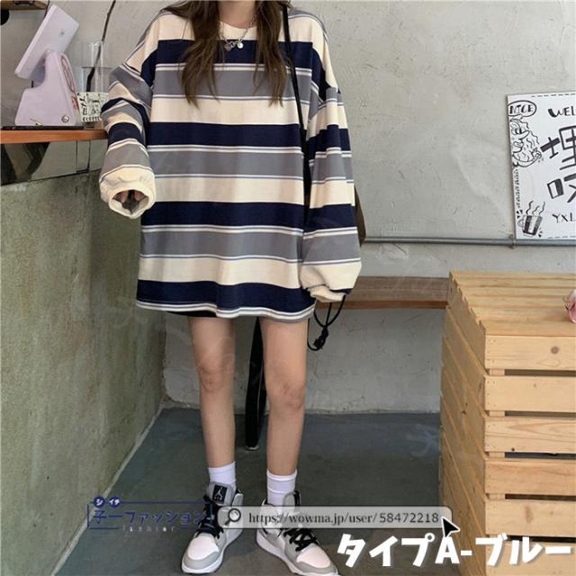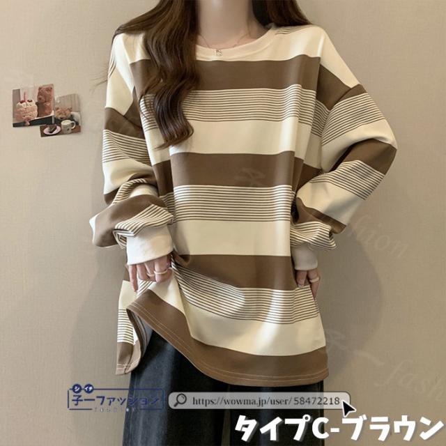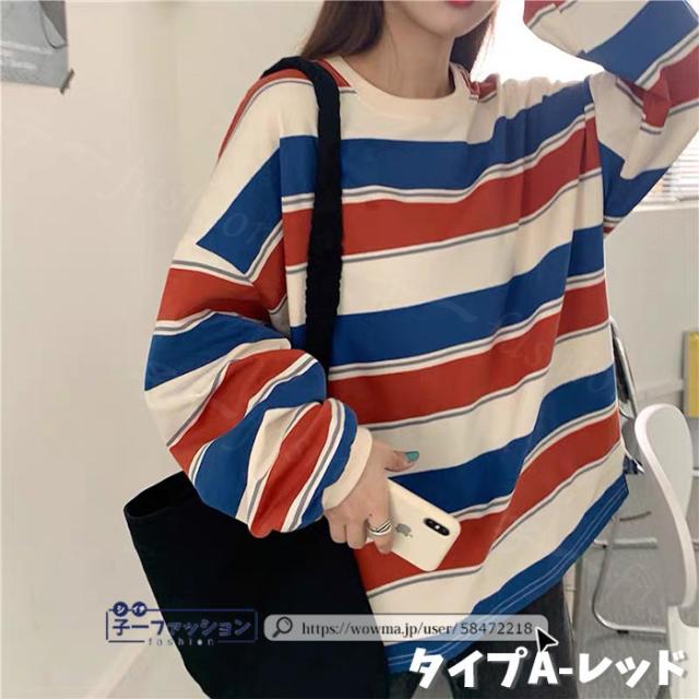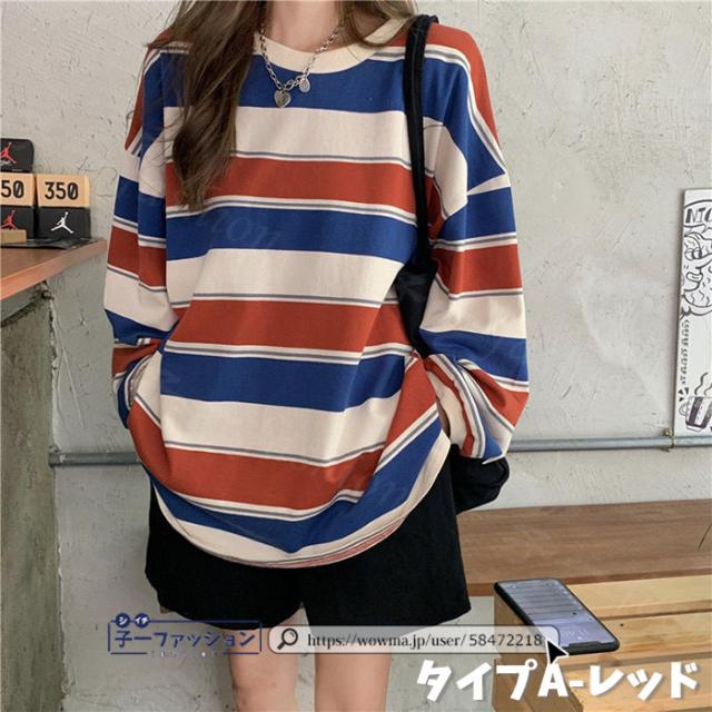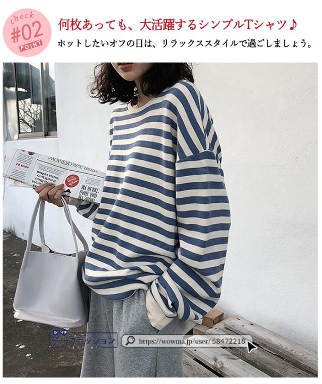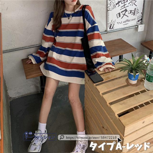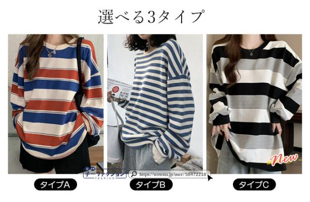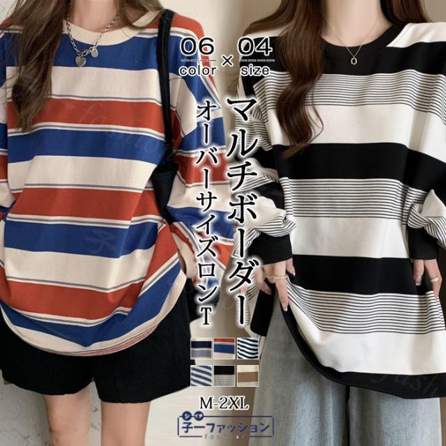 <1点あたり1,190円!2点同時購入&クーポン利用で> ロンT Tシャツ 長袖 長袖tシャツ ボーダー マルチボーダー 冬新作 新作 3タイプ トップス レディース オーバーサイズ ゆったり ロング 長袖 tシャツ プルオーバー トレーナー 春秋 体型カバー カットソー 秋冬