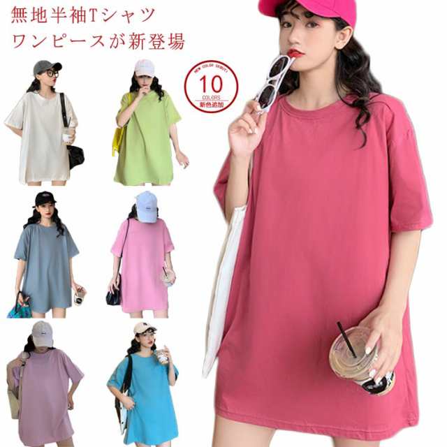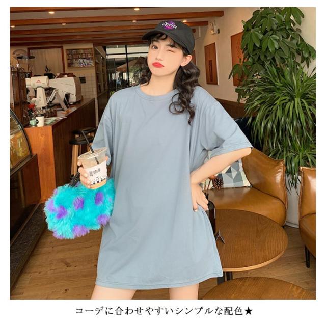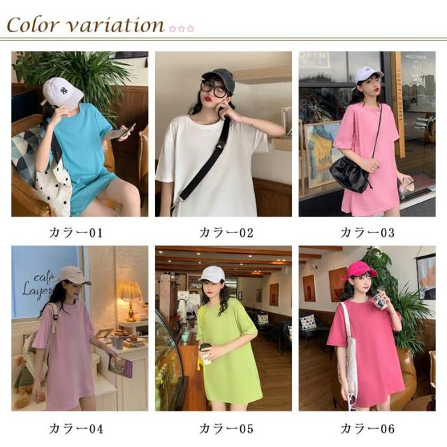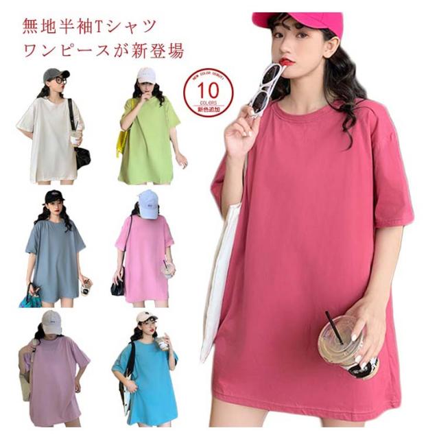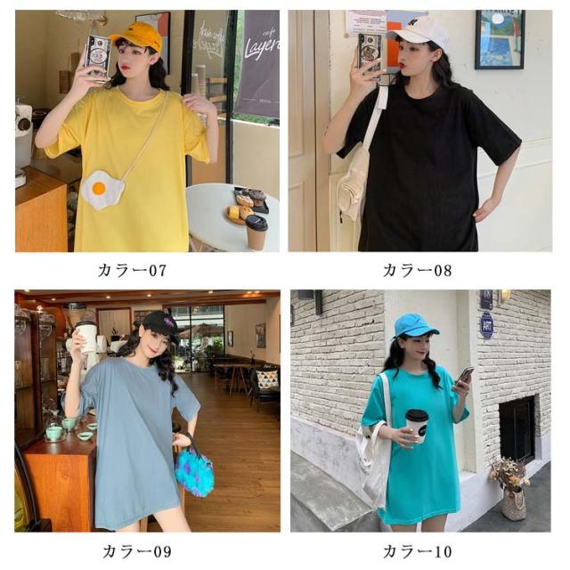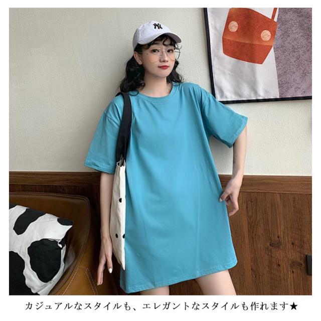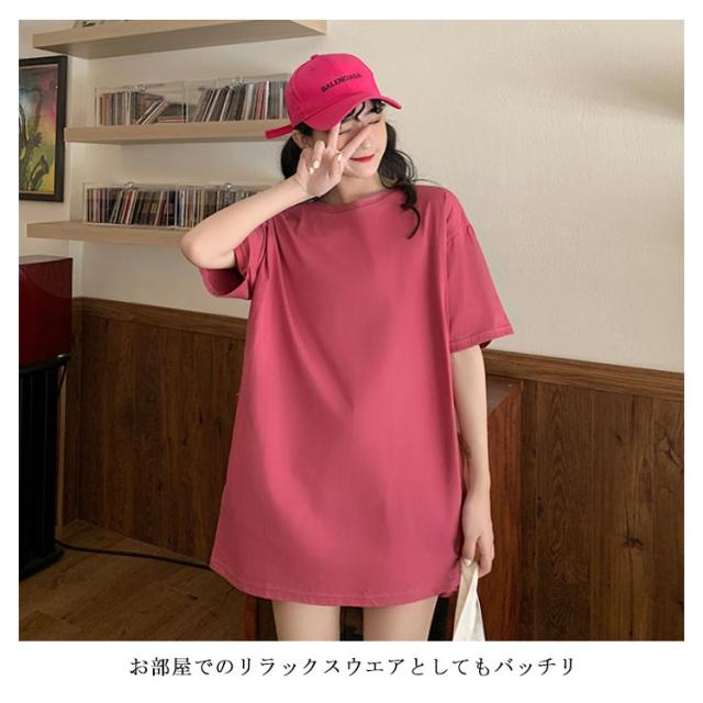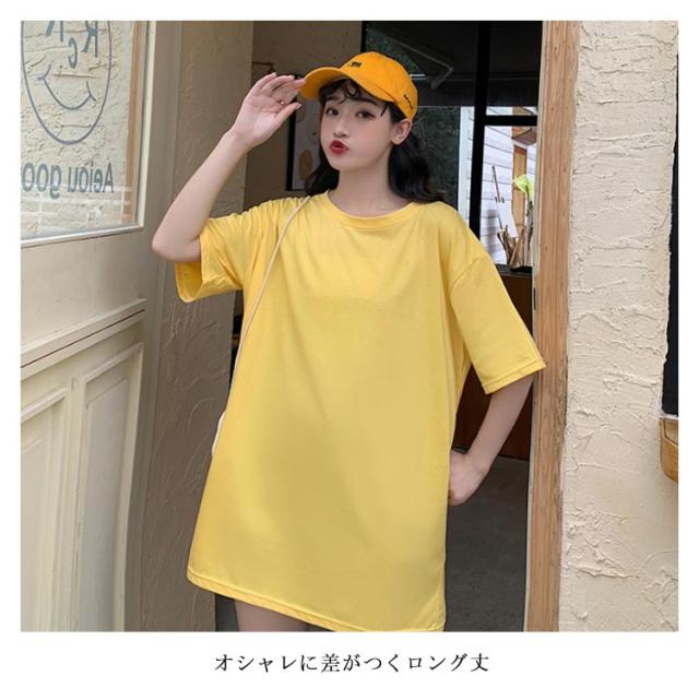 Tシャツ レディース ロングTシャツ Tシャツワンピース ゆるTシャツ 無地Tシャツ 夏服 普段着 ロング丈 クルーネック 純色 薄手 カジュアル フェミニン セクシー ルーズ ゆったり かわいい 個性的 シンプル 2020春新作