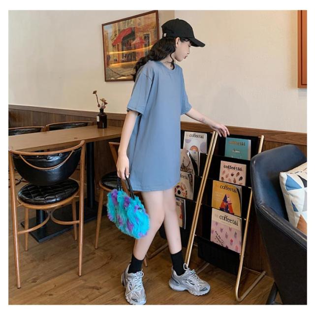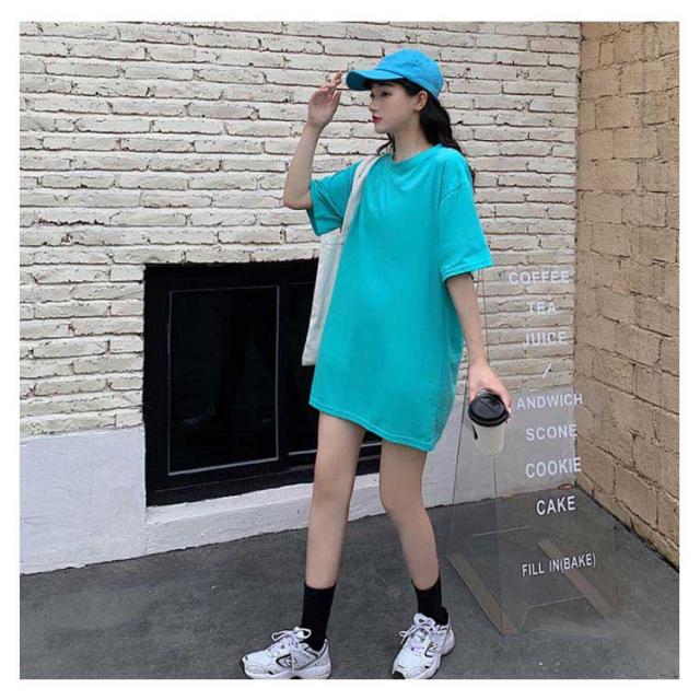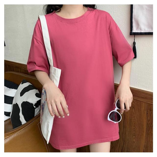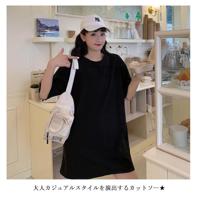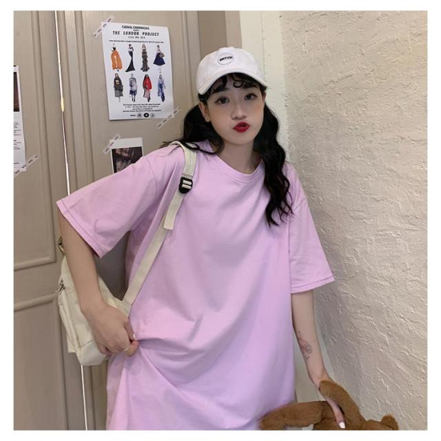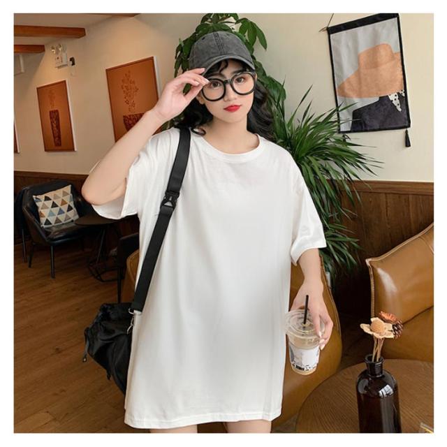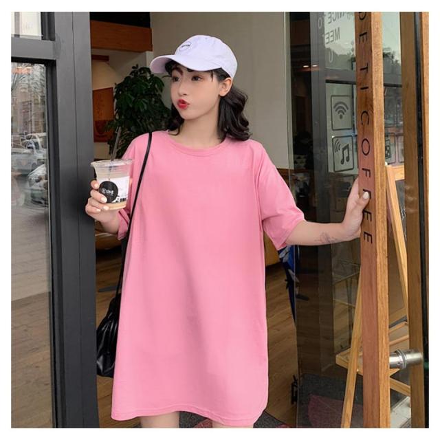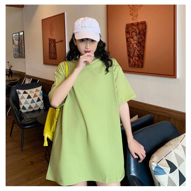 Tシャツ レディース ロングTシャツ Tシャツワンピース ゆるTシャツ 無地Tシャツ 夏服 普段着 ロング丈 クルーネック 純色 薄手 カジュアル フェミニン セクシー ルーズ ゆったり かわいい 個性的 シンプル 2020春新作