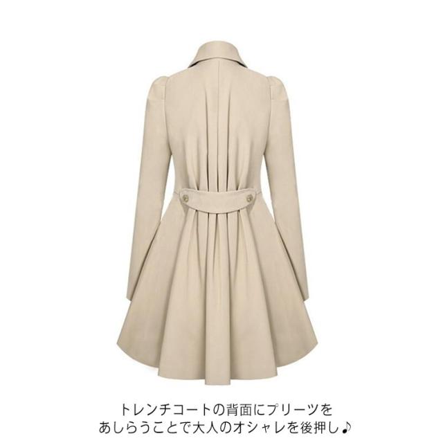 | 羽織るだけでこなれたスタイリングが完成するトレンチコートです。 トレンチコートの背面にプリーツをあしらうことで大人のオシャレを後押し♪ 裾に向かって控えめに広がったロング丈のコートは、気になる体型もカバーしてくれます。 トップスの上にサラッと羽織るだけで、大人っぽく上品なコーディネートが完成◎ | |
