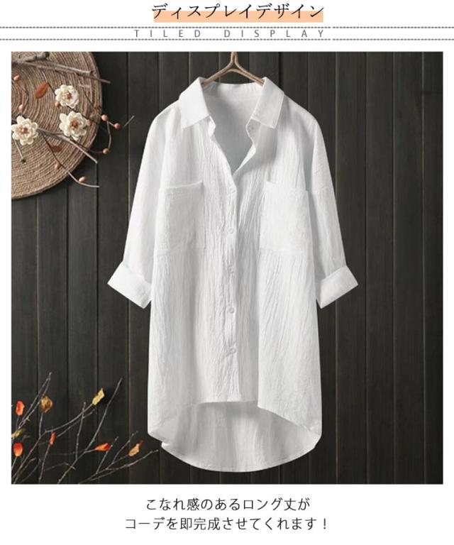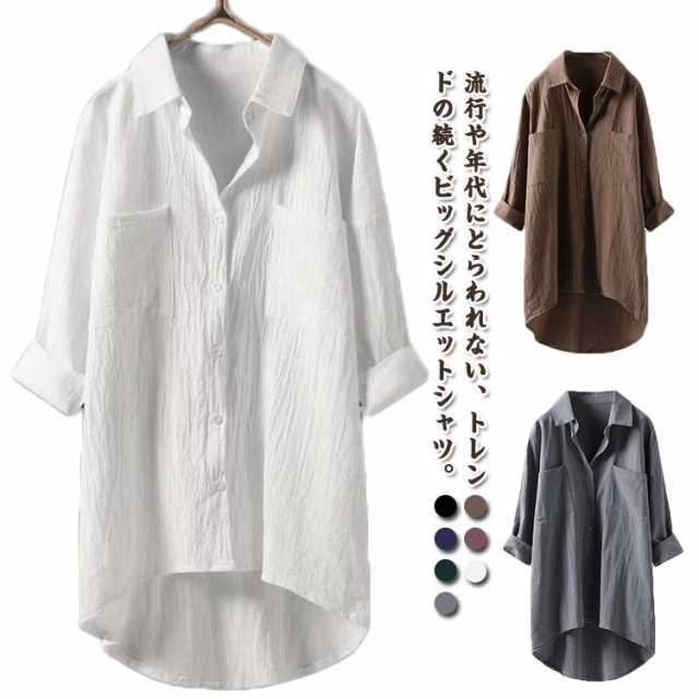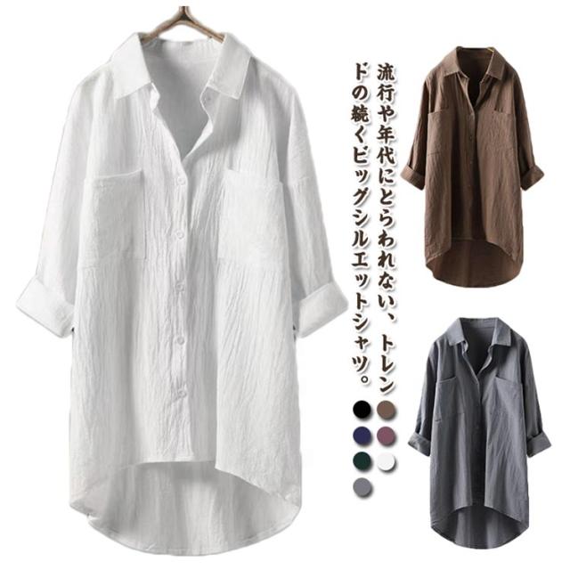 シャツワンピース ロングシャツ 大きいサイズ 春 夏 ワンピース ロングワンピース 白シャツ レディース 綿麻 体型カバー 着痩せ スリット ラウンドテール チュニック ゆるシャツ 羽織 お洒落 30代 40代 50代 送料無料