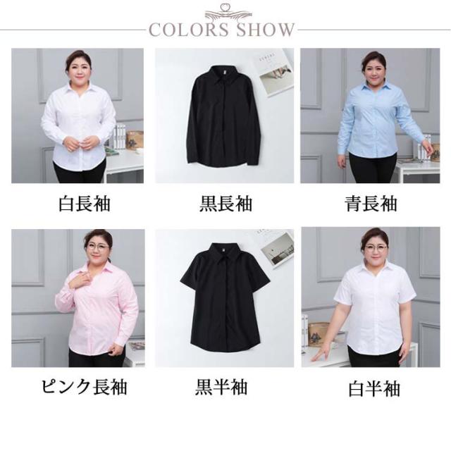 半袖シャツ スーツ 美しく着れる 白 長袖 半袖 白シャツ ゆるシャツ スーツ 黒 ワイシャツ大きいサイズ ブラウス インナー S-8XL ビジネス 事務服 制服 ボタン ゆったり オフィス ぽっちゃりさん OL 会社 通勤 ワイシャツ白 ホワイト