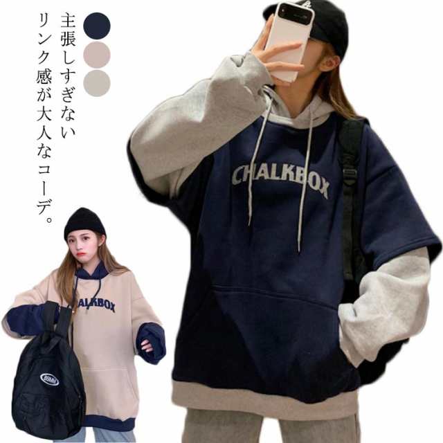 送料無料 パーカー パーカー 韓国風 お揃い カップル ペアルック スウェット フード付き メンズ レディース 配色 プリント 男女兼用 プルオーバーパーカー お洒落 秋冬 春 長袖 トレーナー 送料無料 着?せ ゆったり ポケット付き