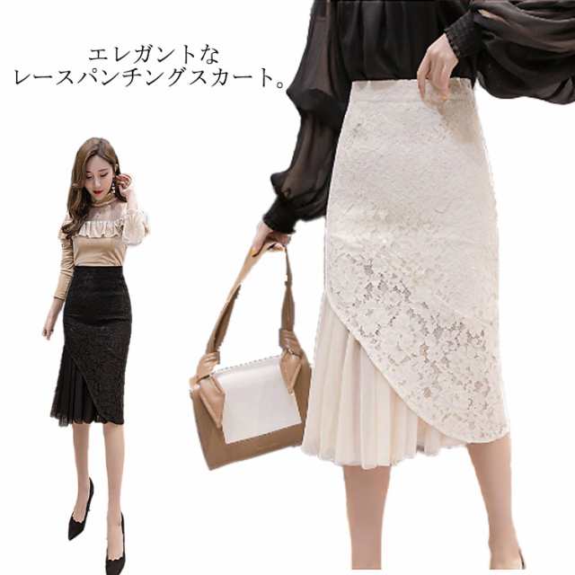 【送料無料】レースタイトスカート タイト スカート レディース 膝丈 フラワー 花柄 切り替え チュール フレア 細見え ペンシルスカート エレガント 通勤 オフィス カジュアル フォーマル オフィス 結婚式 お呼ばれ 大人