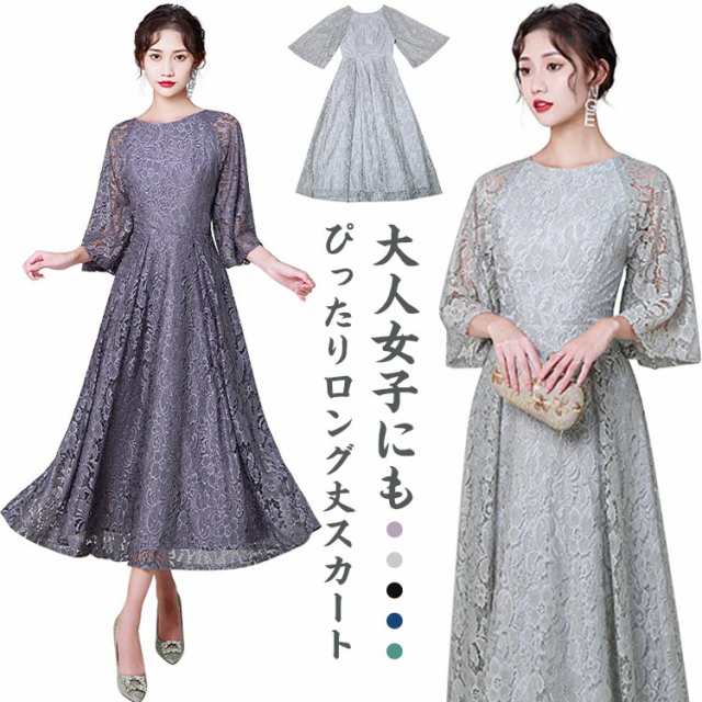 結婚式 ワンピース パーティードレス 花柄 レース ロングドレス 総レース シアー 透け感 フレア袖 オケージョン 春 夏 秋 冬 パーティドレス 二次会 謝恩会 成人式 同窓会 体型カバー 服装 入学式 卒業式
