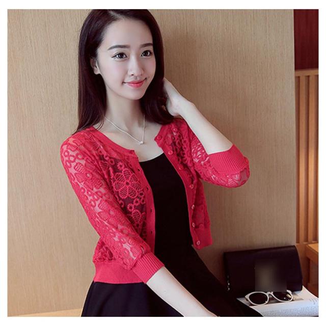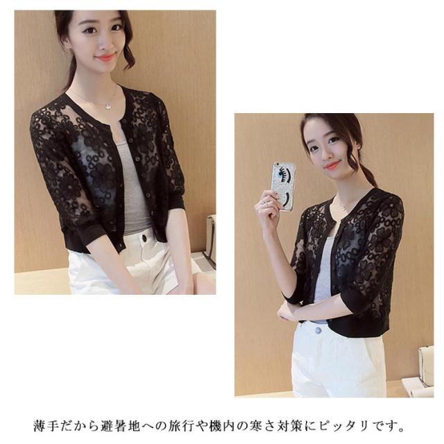 全6色×4サイズ!フラワーレース刺繍モチーフ ニットカーディガン カーディガン ボレロ ニット 羽織り クルーネック 花柄 レース 刺繍 ショート丈 春 夏 秋