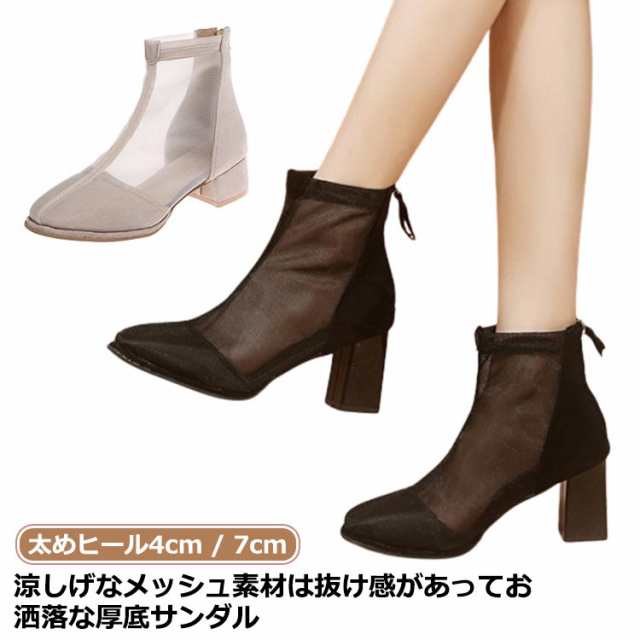 ブーツサンダル メッシュ レディース サマーブーツ シューズ ブーサン ヒール4cm 7cmブーツ サマーブーツ ブーツサンダル スプリングブーツ アンクルブーティ 夏春ブーツ 美脚 脚長効果 歩きやすい 美脚サンダル シースルー 透かし レース 夏 通気性 韓国風 送料無料