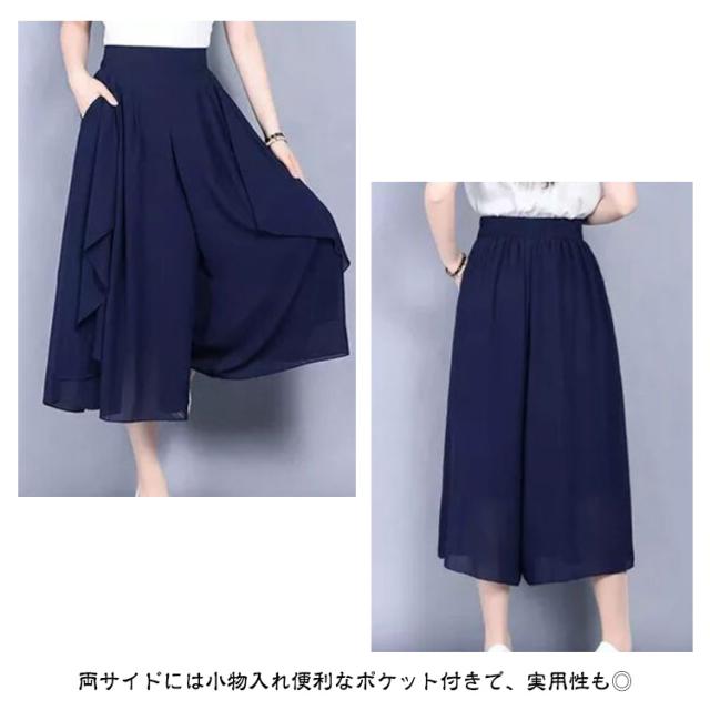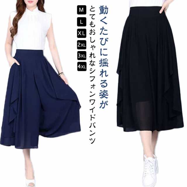 スカンツ スカーチョ クロップドパンツ 7分丈 ワイドパンツ レディース ふんわり 春夏 無地 体型カバー ゆったり 大きいサイズ ウエストゴム ガウチョパンツ 裏地付き シフォンパンツ おしゃれ 着痩せ 大人女性 シンプル 送料無料