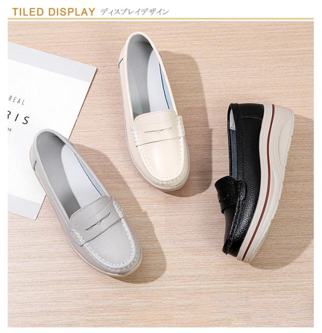 レディース スリッポン ローファー 疲れない 5cm パンプス レディース 厚底シューズ 防滑 滑り止め 春秋 革靴 歩きやすい 走れる 痛くない おしゃれ シンプル 送料無料 レディースシューズ 靴 女子 黒 送料無料