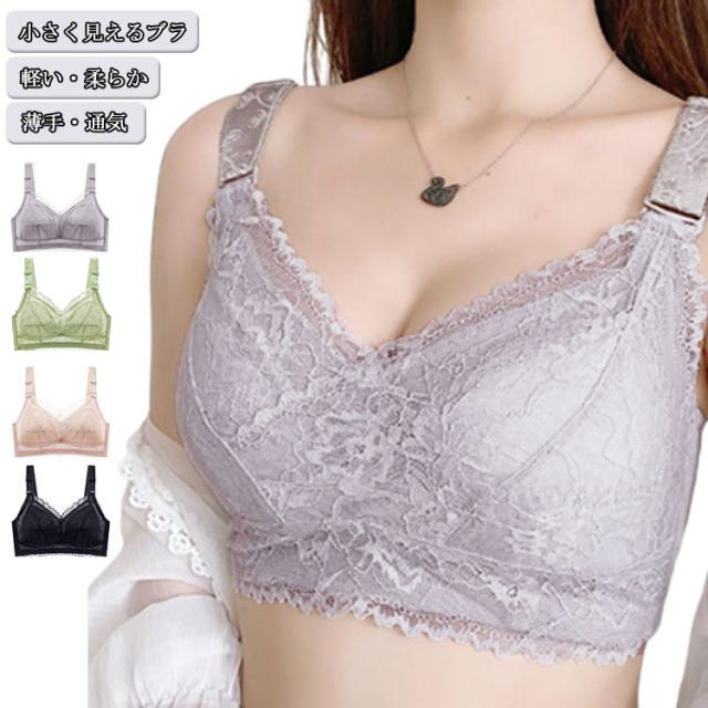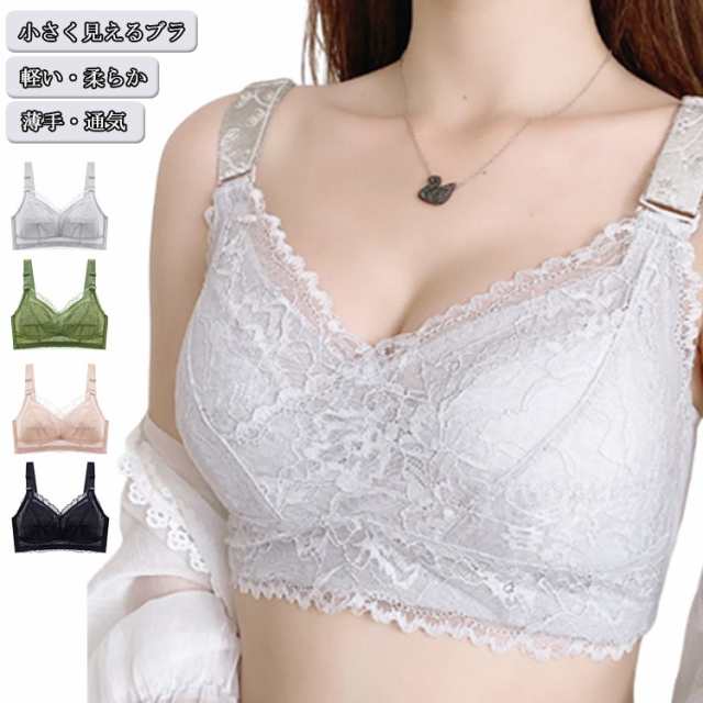 胸が小さく見えるブラ 胸を小さく見せるブラジャー レディース 総レース ノンワイヤー ブラジャー 花柄レース 薄型 着痩せブラ 脇高ブラ 脇肉 補正下着 フルカップ 和装ブラ さらしブラ かわいい 大きいサイズ インナー