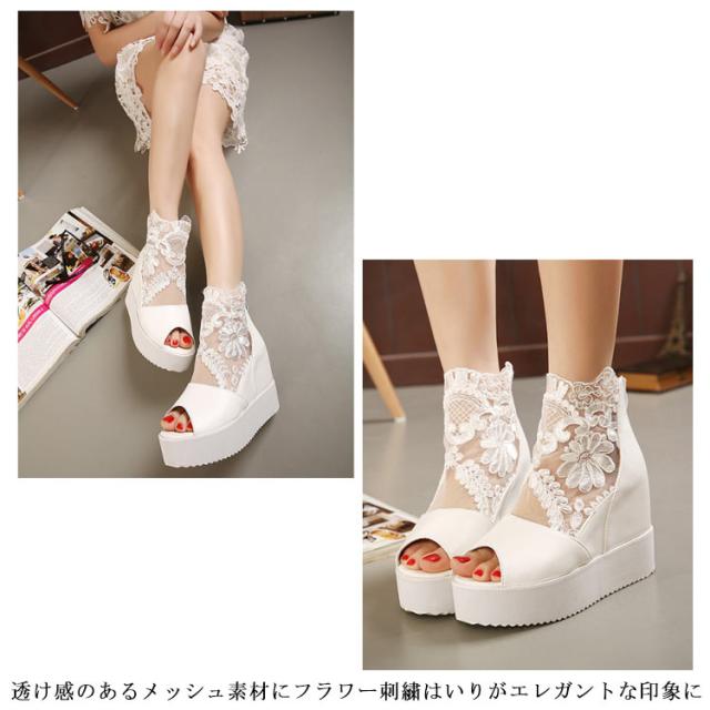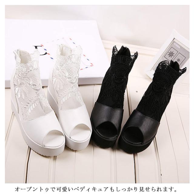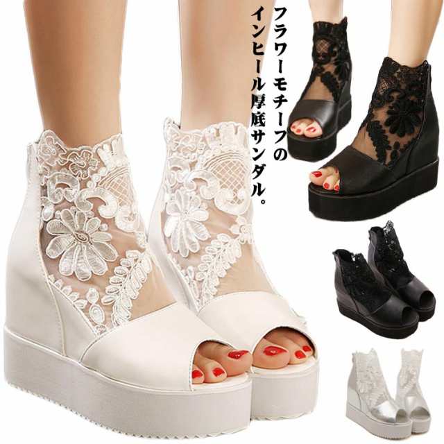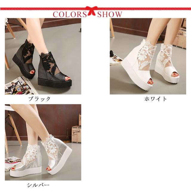ブーツサンダル 厚底サンダル レディース サマーブーツ インヒール サンダル ウェッジソール レース 花柄 ヒール10cm ヒールサンダル オープントゥ メッシュ 通気性 透け感 カジュアル 美脚 疲れにくい 痛くない 春 夏