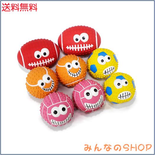 【子犬・小型犬・中型犬向け・可愛いボール8点セット】:8点セット(4色8ボール)、多様な表情のボールの形のデザイン,遊びながら飼い主に表情を知る訓練こともできます。こののおもちゃのサイズは7cm×7cm×7cm(ラグビーデザインだけのサイズは7cm×7cm×9cm)ので,子犬/小型犬/中型犬の口の形に適します。子犬/小型犬/中型犬は大活躍します。SCHITEC 犬 おもちゃ 音の出る ボール 【8個セット 野球 サッカー バレーボール ラグビー】 噛むおもちゃ 歯磨き デンタル玩具 丈夫耐久