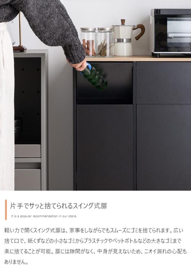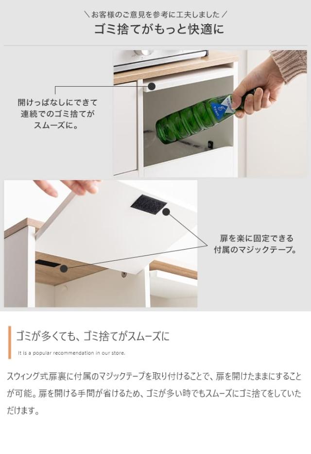 スイング式扉を採用しているので、片手でサッと捨てられ、忙しい調理中や手がふさがっているときでも快適に使えます。